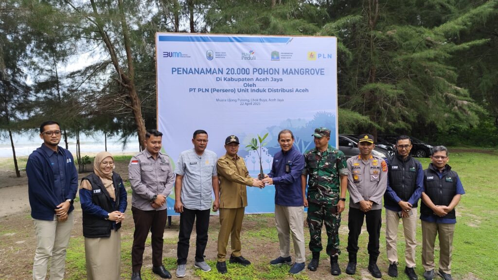 ACEH JAYA – Dalam rangka menjaga kelestarian lingkungan dan ekosistem pesisir, Pemerintah Kabupaten Aceh Jaya bersama PT. PLN (Persero) UID Aceh melaksanakan kegiatan penanaman 20.000 pohon mangrove di seluruh wilayah Kabupaten Aceh Jaya.