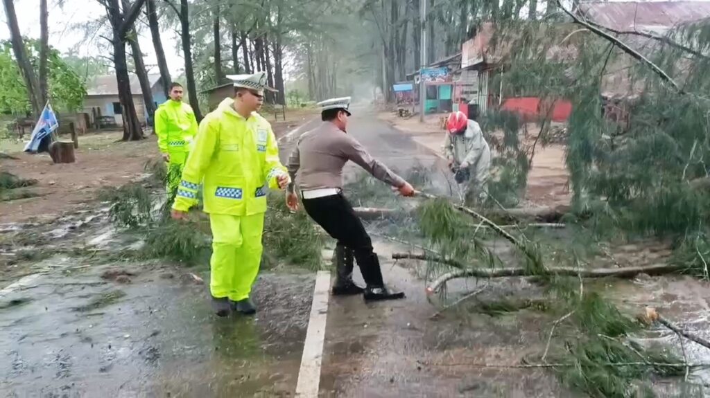 “Personel kami segera tiba di lokasi untuk melakukan pengamanan dan pengaturan arus lalu lintas agar tidak terjadi kemacetan maupun potensi kecelakaan lalu lintas akibat badan jalan yang tertutup material pohon,” ujar Iptu Hisam.