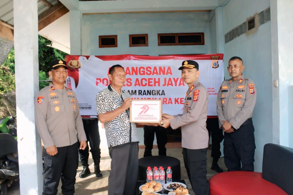 ACEH JAYA — Sambut Hari Bhayangkara ke-79, Kapolres Aceh Jaya AKBP Zulfa Renaldo, S.I.K., M.Si., didampingi Ketua Bhayangkari Cabang Aceh Jaya, Ny. Putri Zulfa, melaksanakan kegiatan anjangsana dengan mengunjungi kediaman para purnawirawan Polri di wilayah Kabupaten Aceh Jaya, Kamis (19/6/2025).