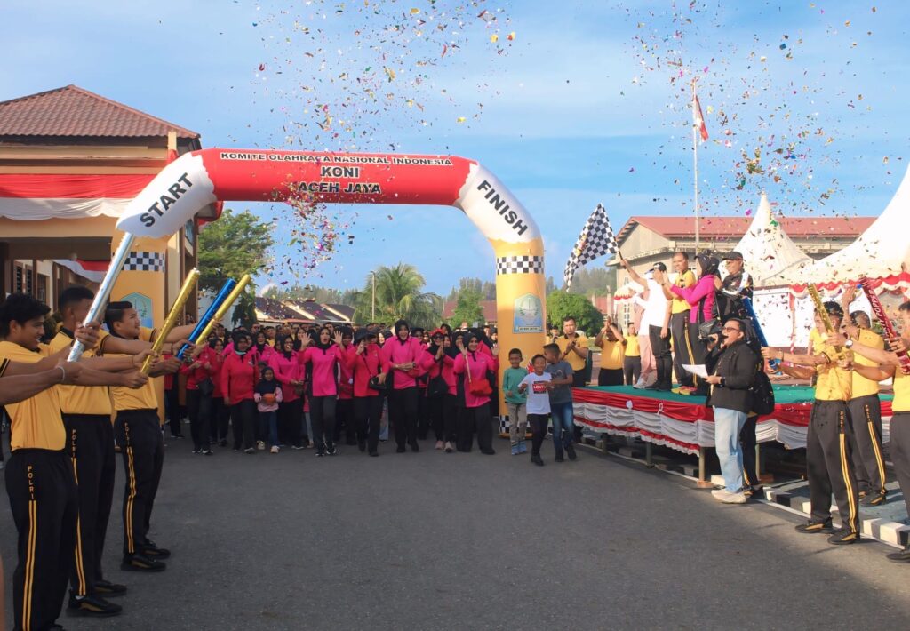 Sambut HUT Bhayangkara Ke 79, Polres Aceh Jaya Gelar Fun Walk