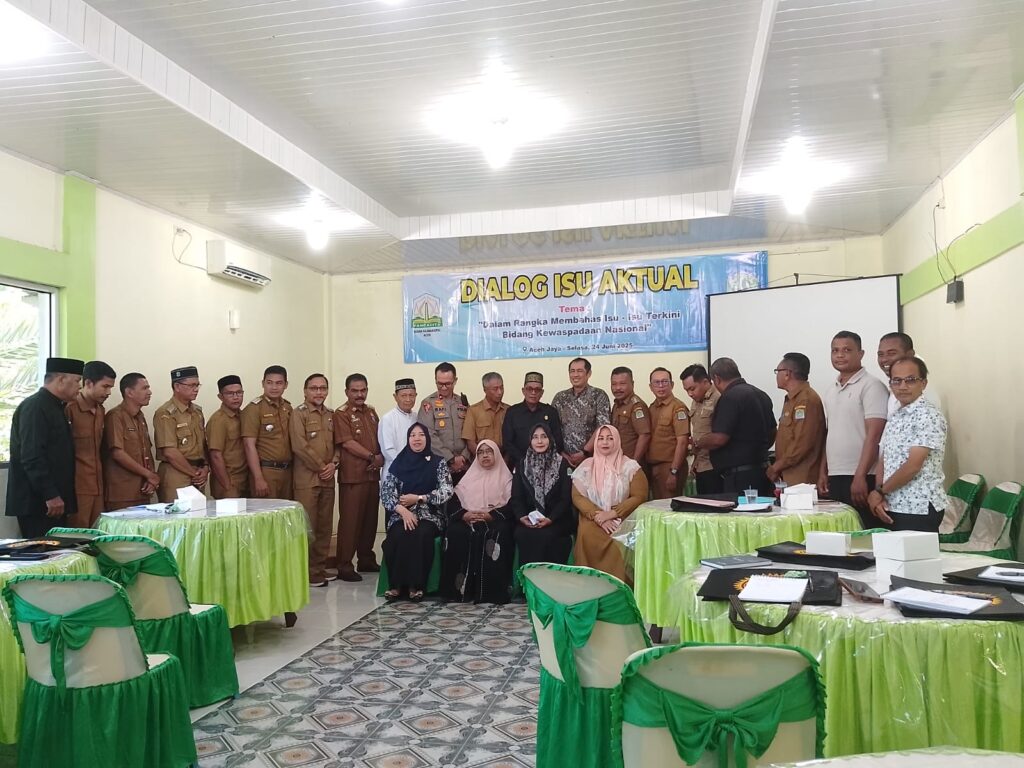ACEH JAYA – Badan Kesatuan Bangsa dan Politik (Kesbangpol) Aceh kerjasama dengan Kesbangpol Kabupaten laksanakan Dialog Isu – isu Aktual 2025 Di Aceh Jaya dengan berbagai kalangan stakeholder di Aula Mina Desa Ketapang, Kecamatan Krueng Sabee Aceh Jaya. Selasa (24/6/2025)
