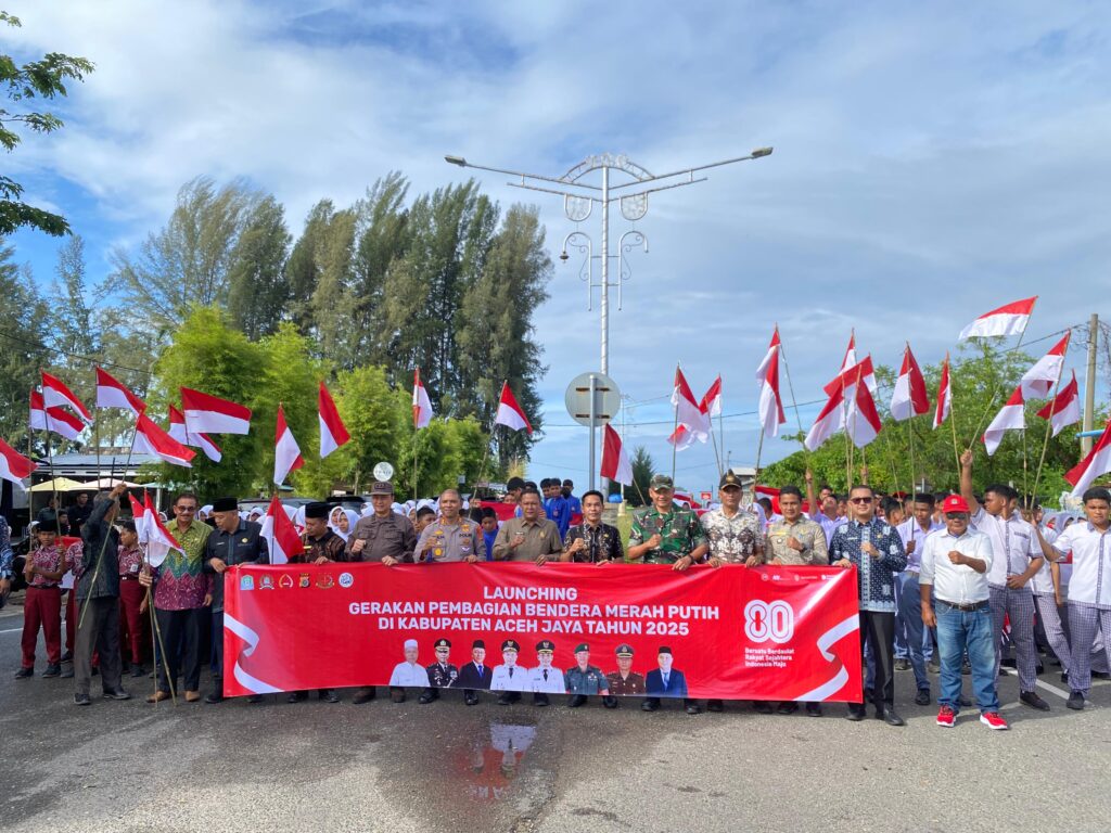 Ia menyampaikan kelau ribuan bendara tersebut akan dibagikan kepada masyarakat Aceh Jaya untuk bisa dikibarkan pada tanggal 1 -31 Agustus mendatang di seluruh pelosok Aceh Jaya.