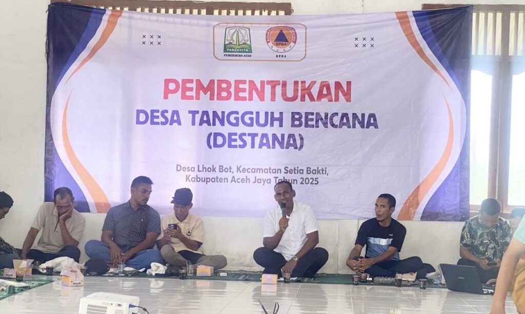 ACEH JAYA – Badan Penanggulangan Bencana Aceh (BPBA) bekerja sama dengan Badan Penanggulangan Bencana Kabupaten (BPBK) Aceh Jaya menggelar sosialisasi Desa Tangguh Bencana (Destana) di Desa Lhok Boet, Kecamatan Setia Bakti Aceh Jaya. Kamis (28/8/2025)
