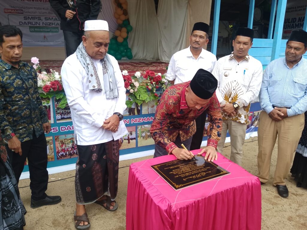 ACEH JAYA – Dalam rangka memperingati Maulid Nabi Besar Muhammad SAW, Sekolah Menengah Pertama Swasta (SMPS) Darun Nizham gelar Pengukuhan Inovasi Sekolah Islam Berbasis Industri (SIRAMBI) di kompleks Pondok Pesantren Darun Nizham Desa Tanoh Anoe, Kecamatan Teunom, Kamis (6/11/2025).