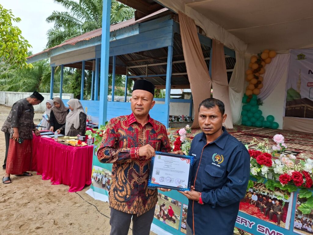 ACEH JAYA – Dua wartawan yang tergabung dalam Persatuan Wartawan Indonesia (PWI) Aceh Jaya menerima Piagam Penghargaan sebagai Jurnalis Inspiratif tahun 2025 atas inovasi untuk Aceh Jaya dari Yayasan Pondok Pesantren SMPS dan SMAS Darun Nizham Aceh Jaya, Kamis (6/11/2025).