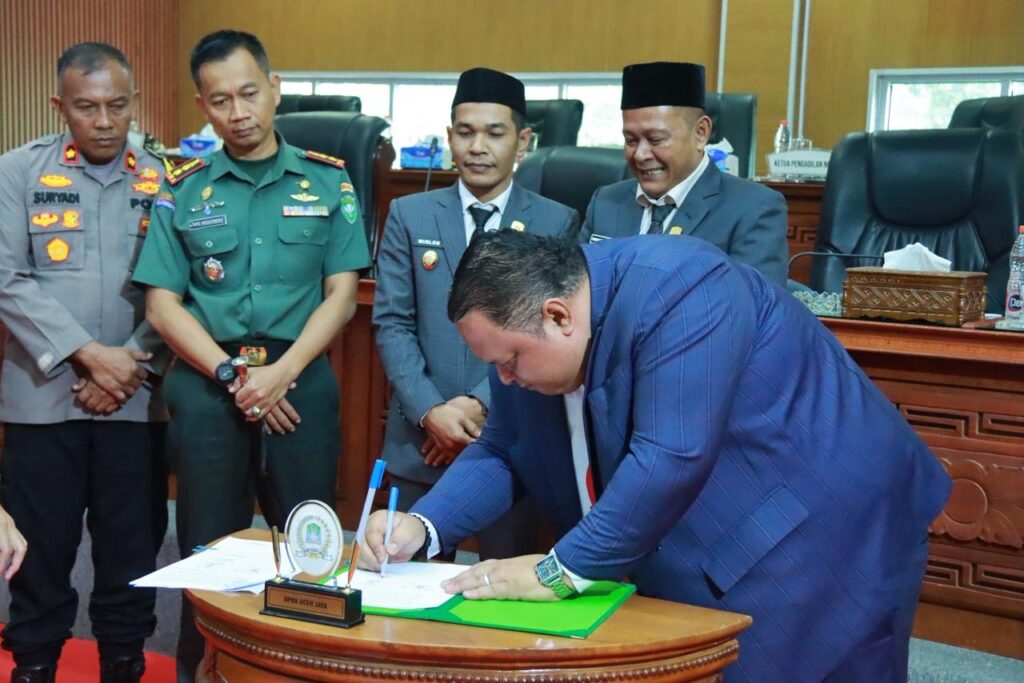 ACEH JAYA – Pemerintah Kabupaten Aceh Jaya bersama Dewan Perwakilan Rakyat Kabupaten (DPRK) resmi menyepakati Kebijakan Umum Anggaran dan Prioritas Plafon Anggaran Sementara (KUA-PPAS) APBK 2026. Penandatanganan nota kesepakatan dilakukan dalam Rapat Paripurna III Masa Persidangan I Tahun Sidang 2025–2026 di ruang sidang utama DPRK Aceh Jaya, Selasa (18/11/2025).