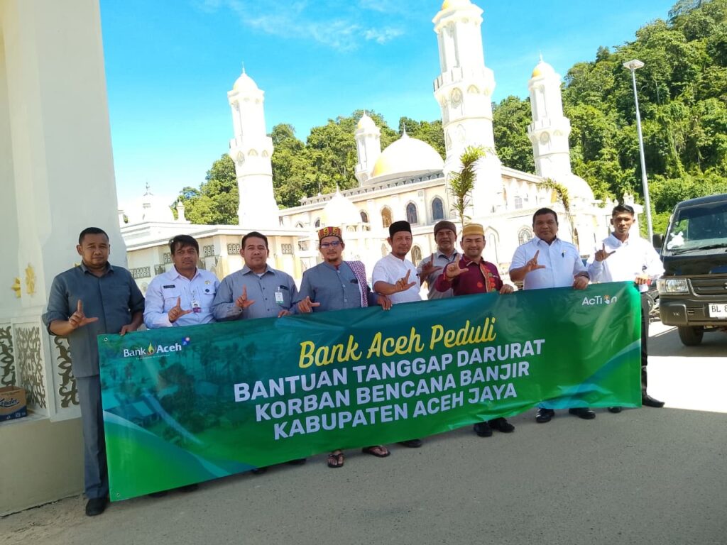 ACEH JAYA – Bank Aceh Syariah (BAS) Cabang Calang peduli menyerahkan bantuan sembako tanggap darurat korban bencana banjir untuk masyarakat yang menimpa musibah, banjir dan longsor di Aceh Jaya.
