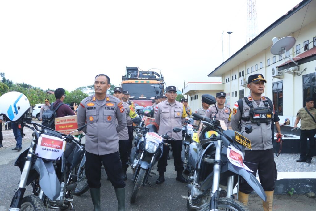 “Alhamdulillah, berdasarkan perintah Kapolri, seluruh dukungan dan bantuan ini kita lepas untuk membantu masyarakat yang terdampak bencana. Termasuk di dalamnya 20 unit sepeda motor Bhabinkamtibmas untuk membawa bantuan ke wilayah-wilayah yang sulit diakses,” ujar Komjen Pol. Dedi Prasetyo.