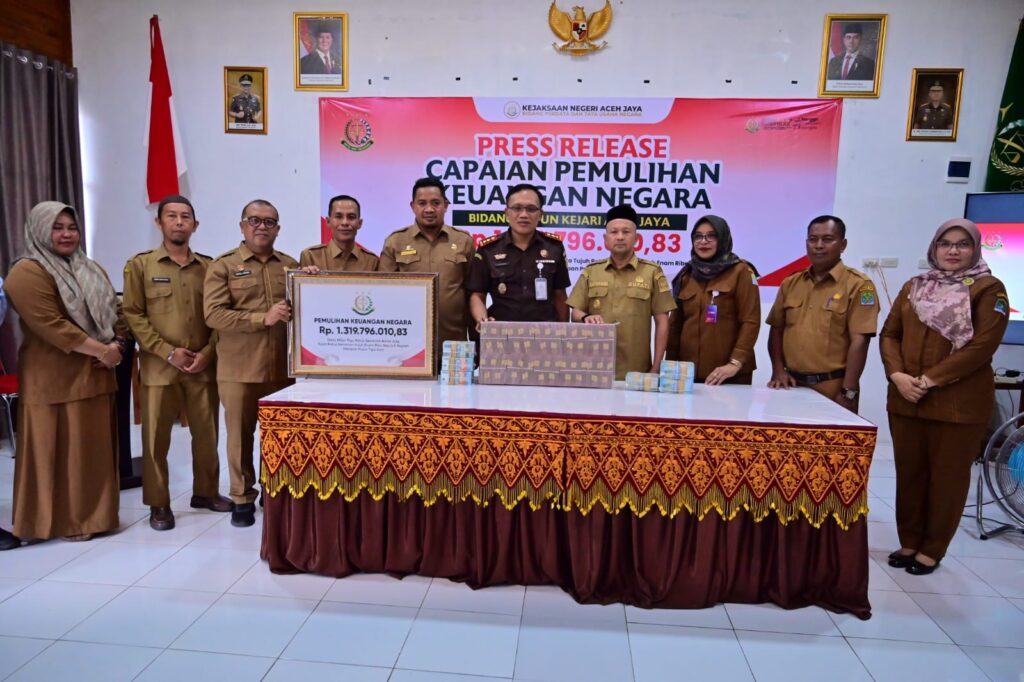 ACEH JAYA – Kejaksaan Negeri (Kejari) Aceh Jaya berhasil memulihkan keuangan negara sebesar Rp1.319.796.010 dari total Rp3,5 miliar. Keberhasilan tersebut sebagaimana disampaikan dalam konferesi pers yang digejar di gedung kejaksaan setempat, Selasa (14/4).